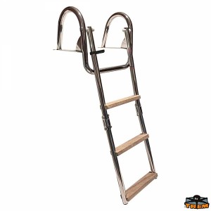 Scaletta pieghevole a 3 - 4 gradini con corrimano e gradini in legno per plancette di poppa